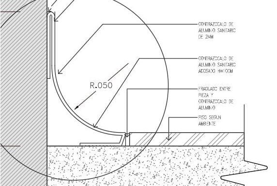 Producto : Zócalo Sanitario Media Caña de Aluminio con Riel Aluminio